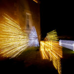 Photos réalisées le 28 décembre 2023 à Saint-Savin. Les vues des fresques projetées sur les bâtiments ne sont pas présentées sur la page.