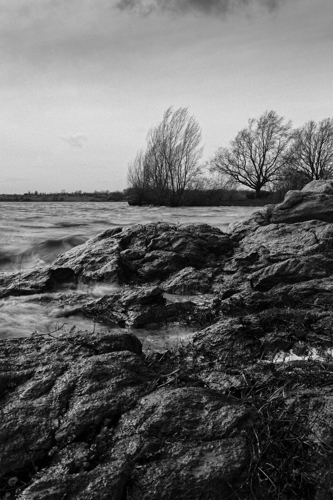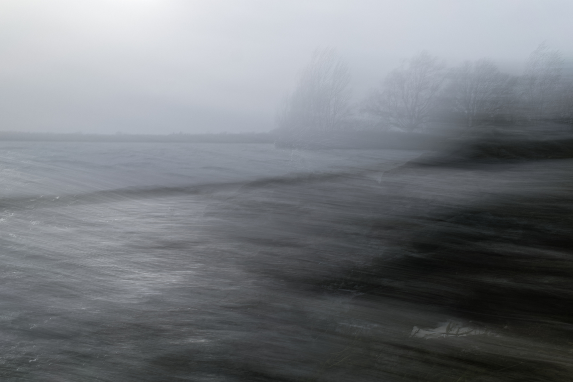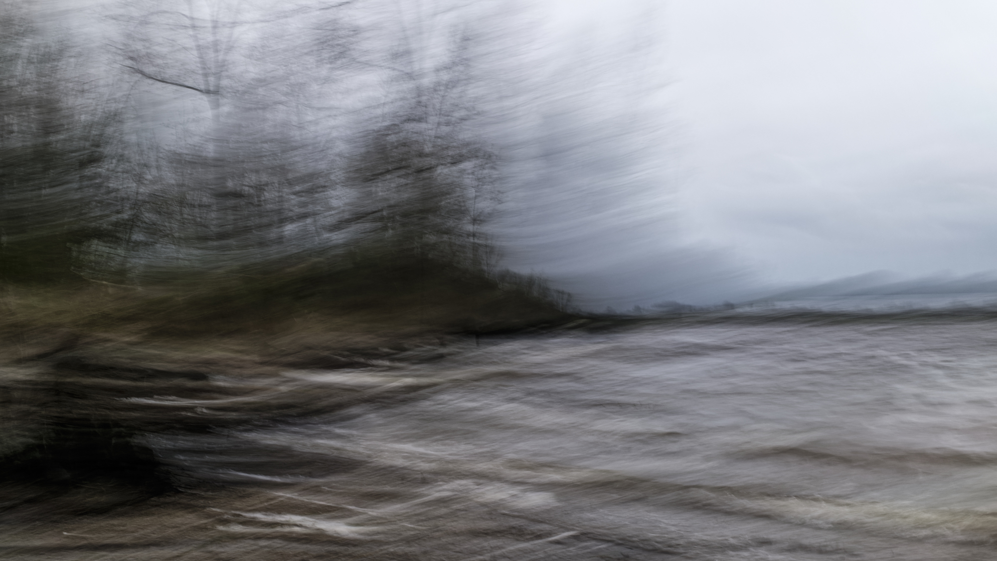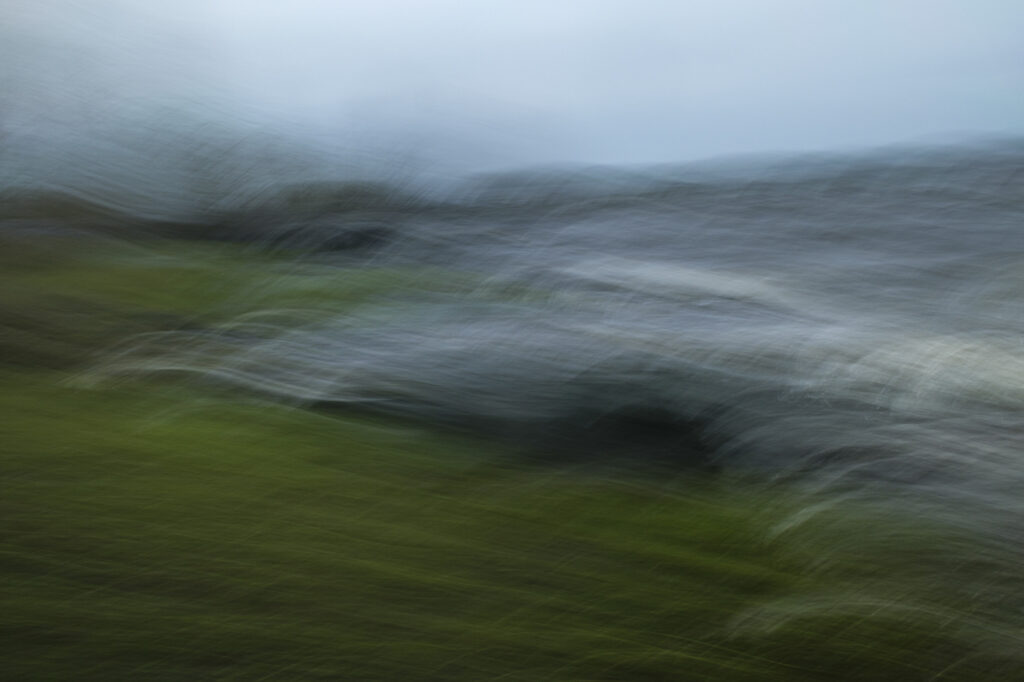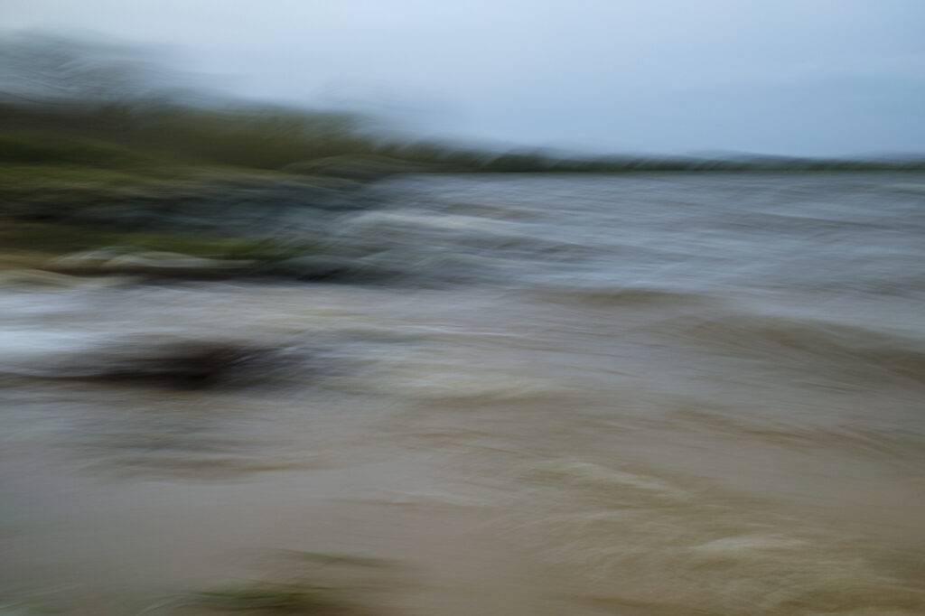 Le paysage sous la tempête. Recherche personnelle avec le filtre ND4 intégré de l’appareil. Quelques secondes de temps de pose, la règle pour que le sujet soit identifiable est que la moitié de l’exposition s’effectue avec le boîtier fixe sur trépied et pour l’autre moitié, on déplace le pied plus ou moins rapidement en fonction de l’effet recherché, ne pas hésiter à multiplier les essais !